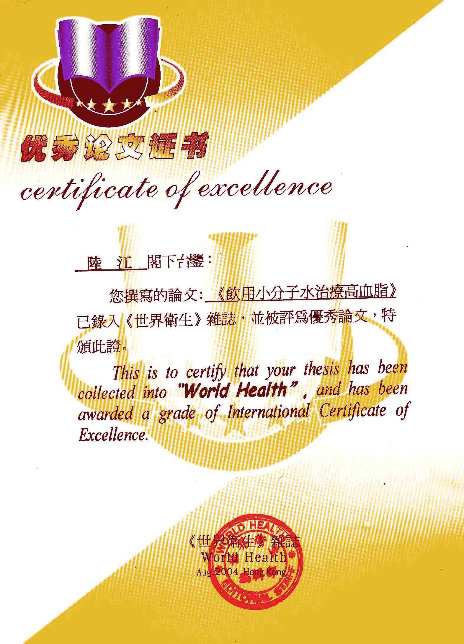 一、創(chuàng)造了在家在職場使用方便的微小分子團水器具。在世界上首先用此理療方法,大規(guī)模地成功地逆轉(zhuǎn)和消除動脈粥樣硬化,確實祛俆高血壓和冠心病與糖尿病,使患者恢復(fù)動脈和心臟及胰島的健康,可消除因細胞缺水使器官衰弱而形成多種器官的缺水性病癥,并使健康人可預(yù)防和減緩動脈粥樣硬化,減少心腦血管病,具有重大的社會經(jīng)濟和戰(zhàn)略意義。