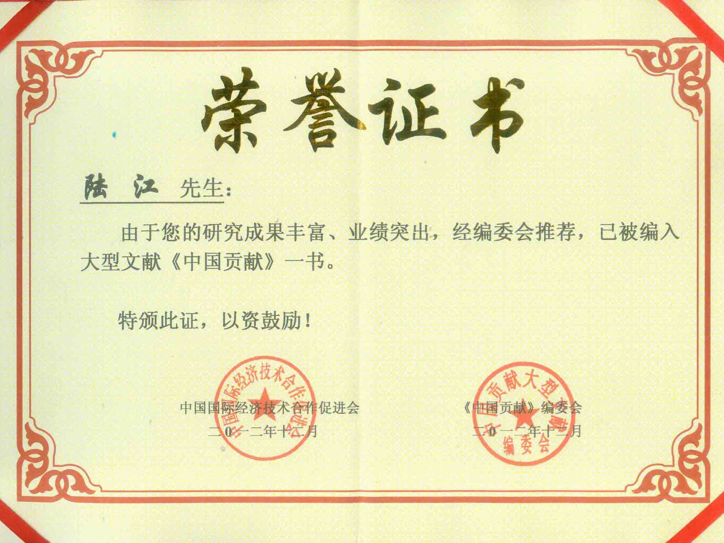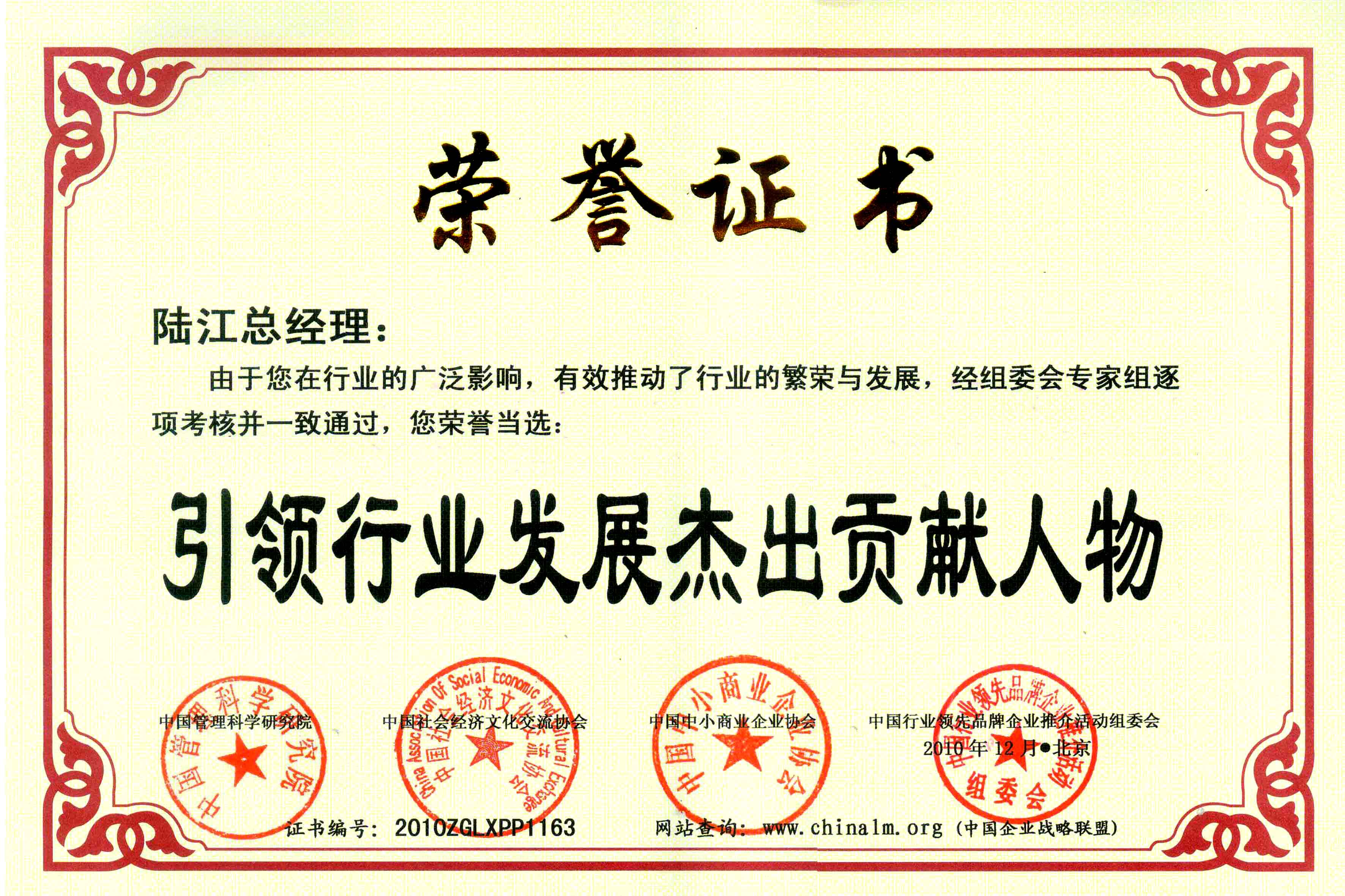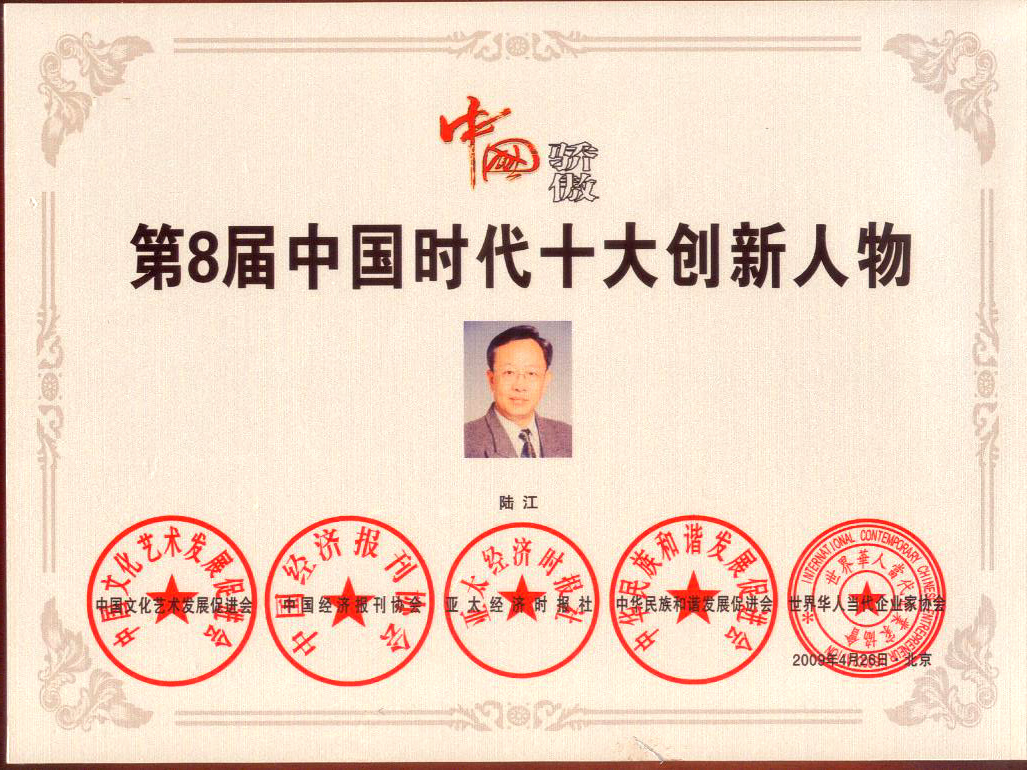 陸江榮獲引領(lǐng)行業(yè)發(fā)展杰出貢獻人物證書 --------卓康公司榮獲全國質(zhì)量、服務(wù)、信譽AAA級品牌證書