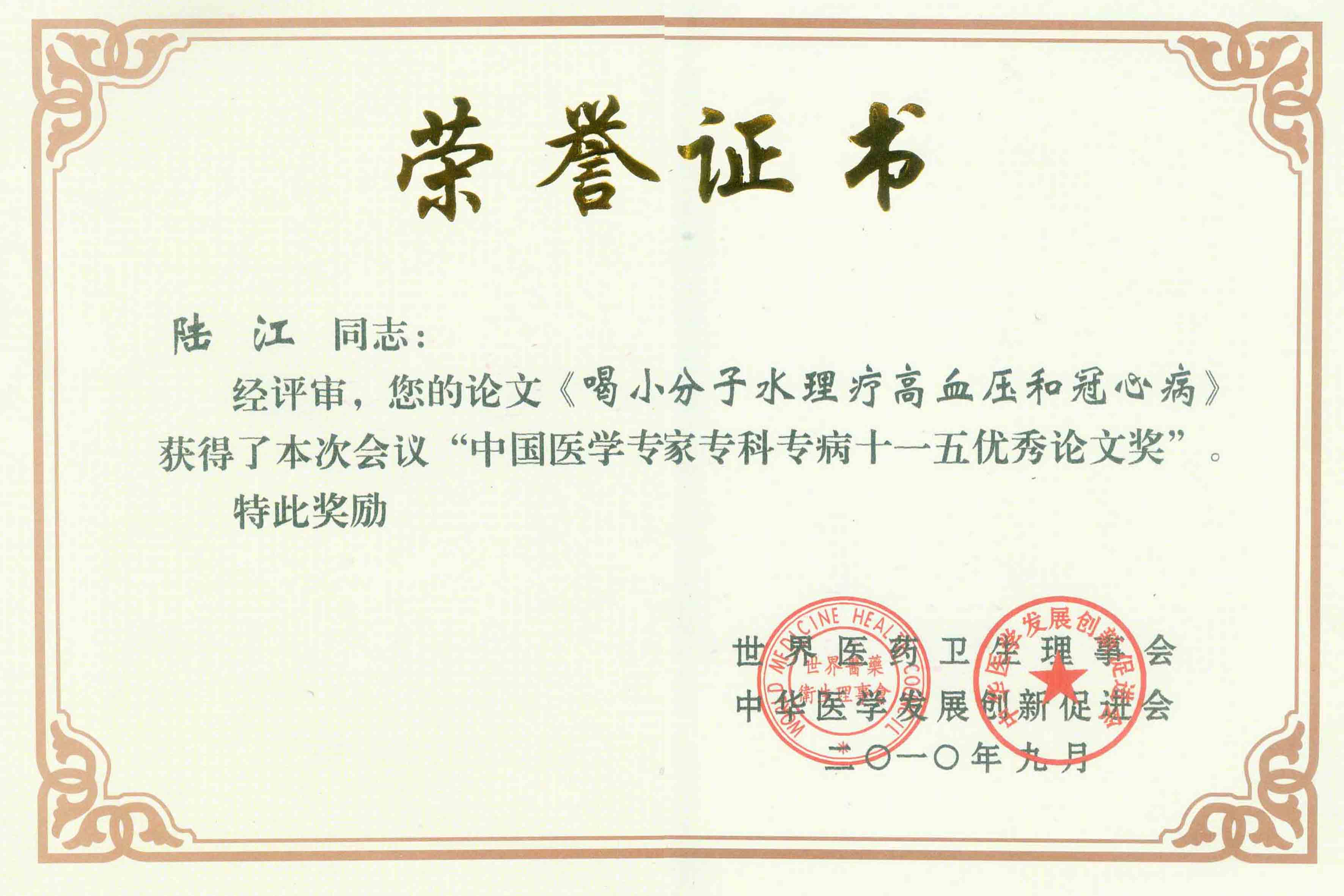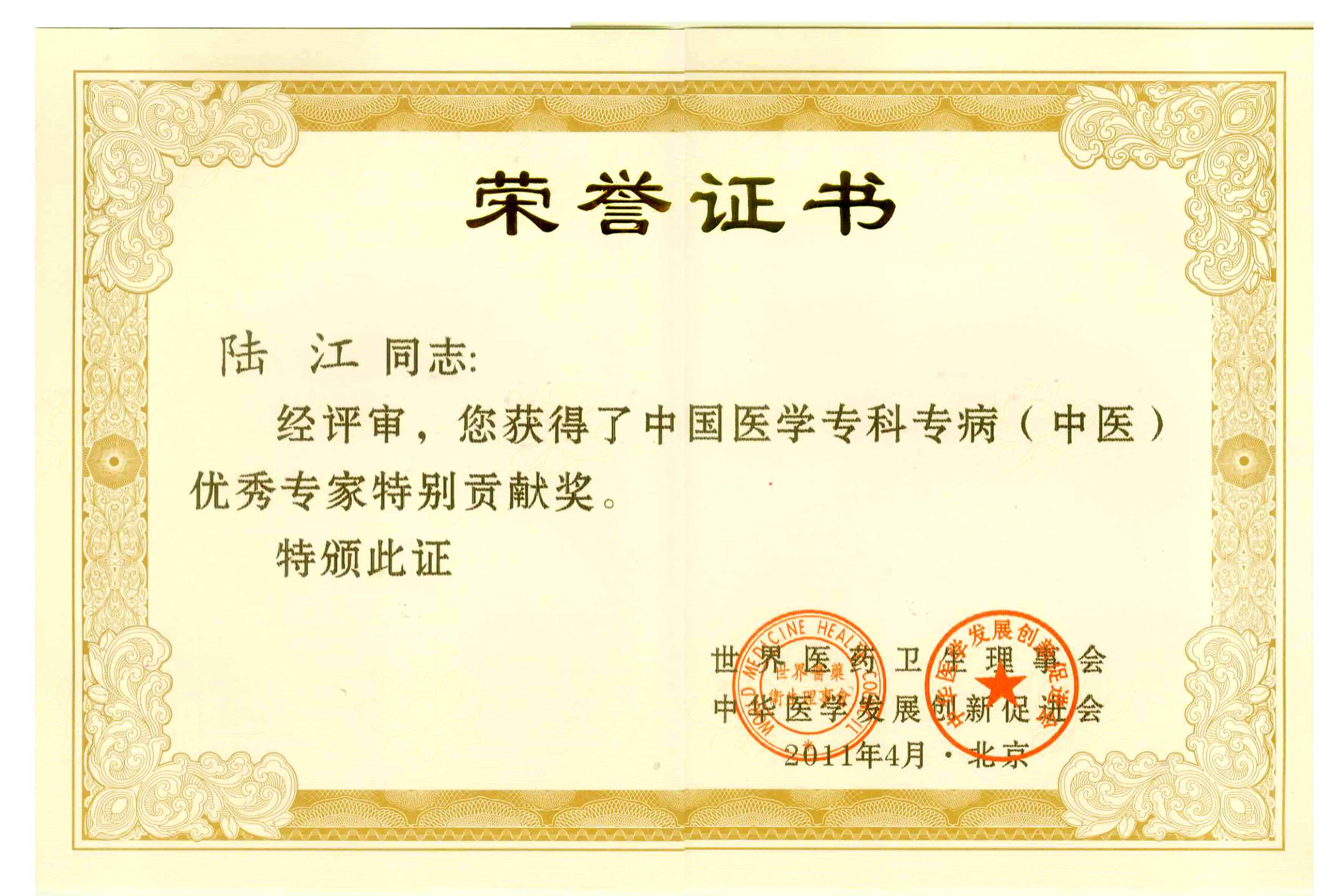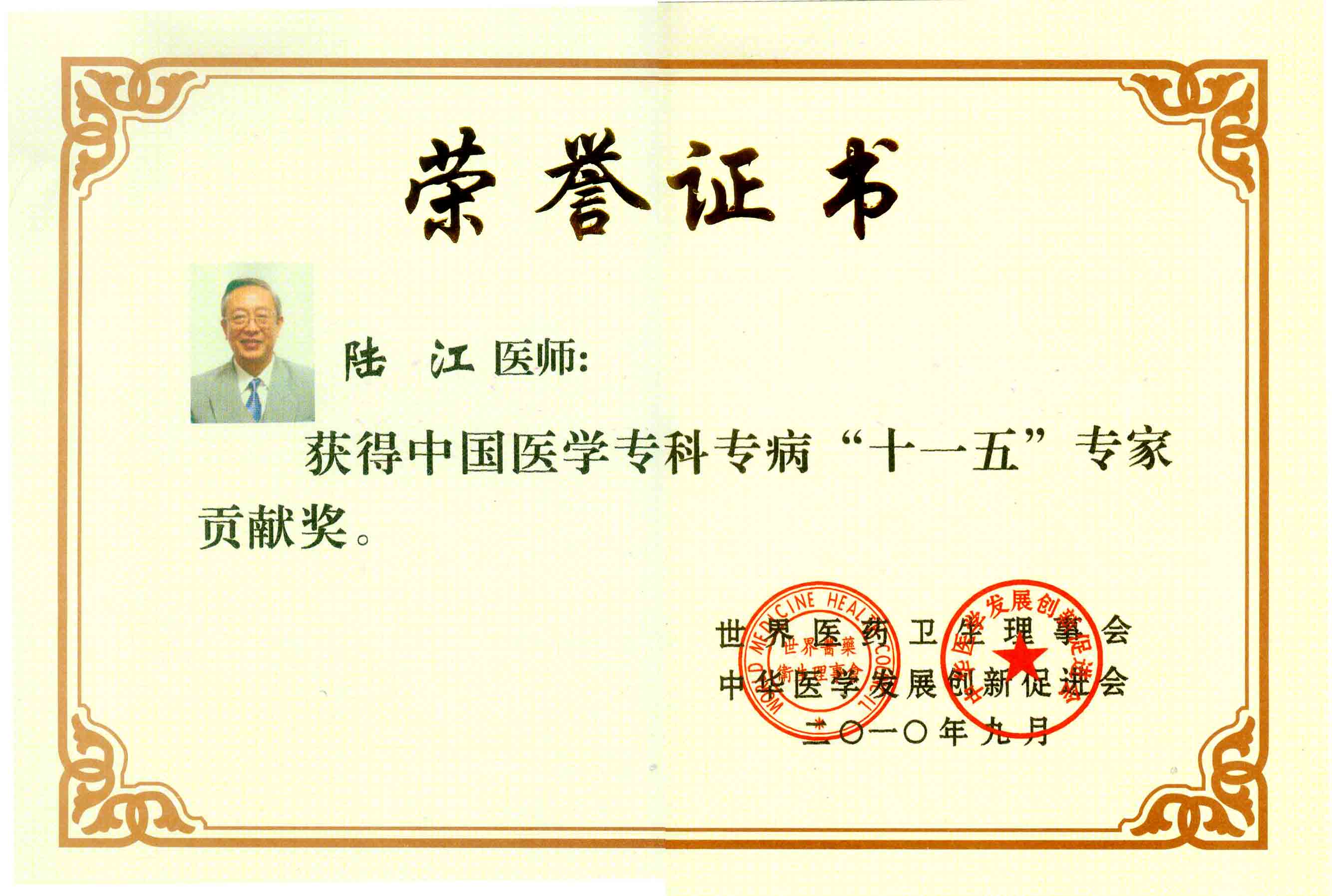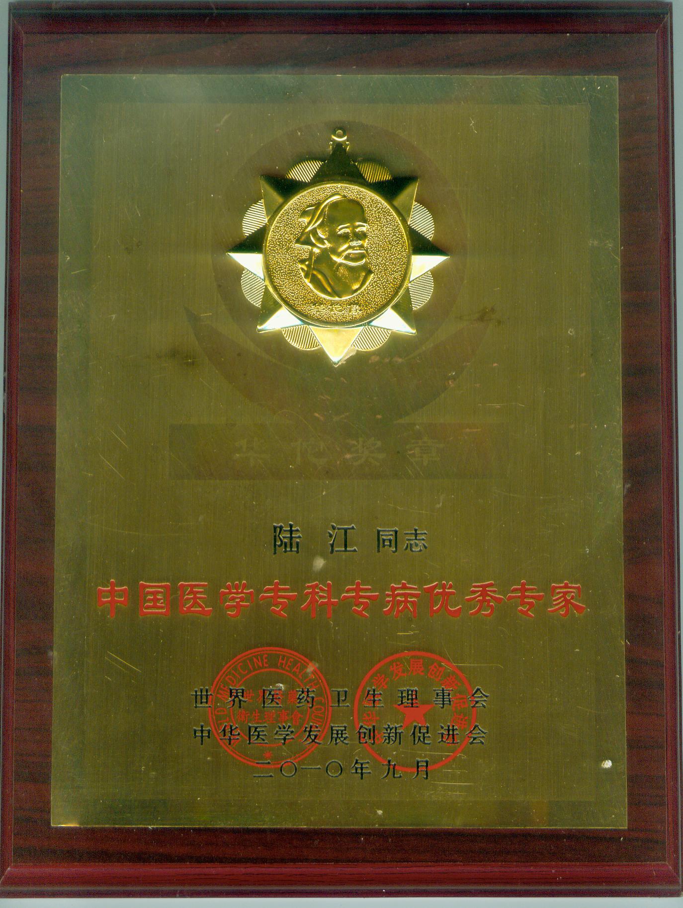 陸江獲得中國醫(yī)學??茖2?yōu)秀專家恃別貢獻獎